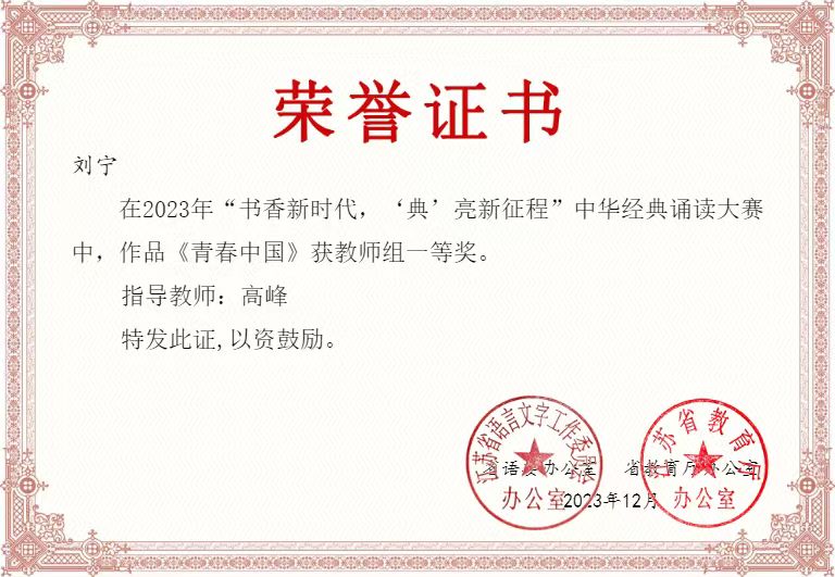 我校在江苏省2023年“书香新时代,‘典’亮新征程”中华经典诵读大赛中喜获佳绩
